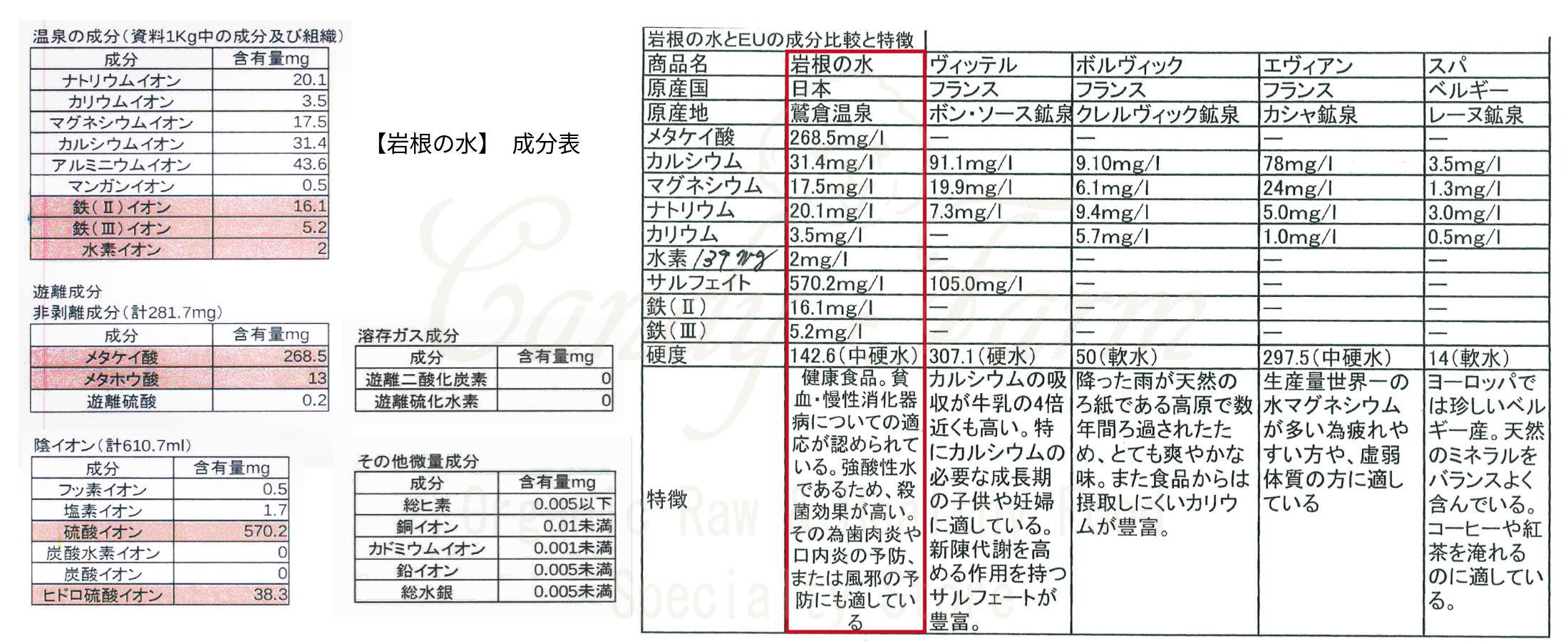●お茶やコーヒーを飲んだ直後に岩根の水を飲まないで下さい。(歯の色素沈着の原因になり得るため)
